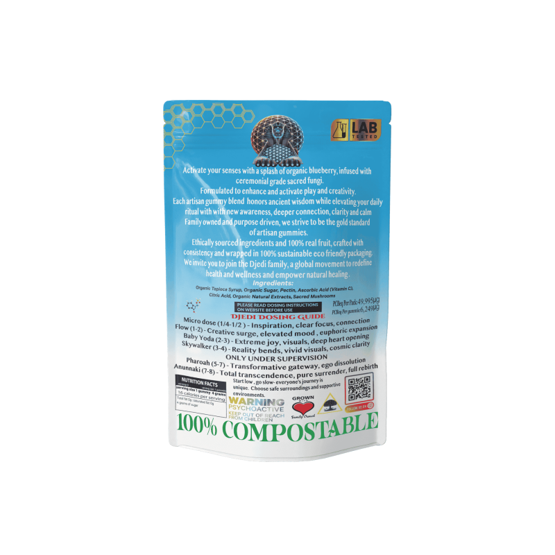 Djedi Mind Trips creates premium mushroom products with purpose. We prioritize quality formulation, sustainable practices, and plant-based compostable packaging because we believe wellness shouldn't compromise the planet. Every product reflects our commitment to conscious consumption and environmental stewardship.