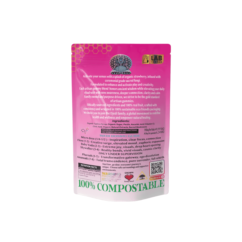 Djedi Mind Trips is raising the bar in the mushroom industry. We were founded to bring credibility to a space that desperately needs it. Every batch uses real fruit and carefully sourced ingredients—no synthetics, no shortcuts, no fillers. We believe transparency and quality are the foundation of trust, and our commitment to both is non-negotiable. We're setting a new industry standard, one premium product at a time.