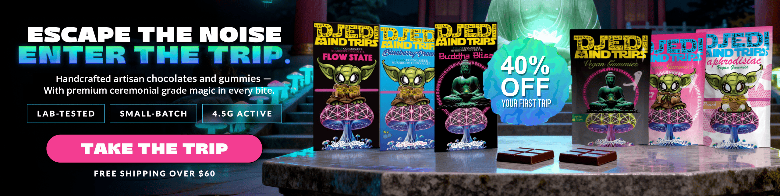 Whenever I need a boost or a little pick-me-up, Djedi Mind Trips’ vegan dark chocolate and microdoses are my go-to. Great quality and a great experience every time!